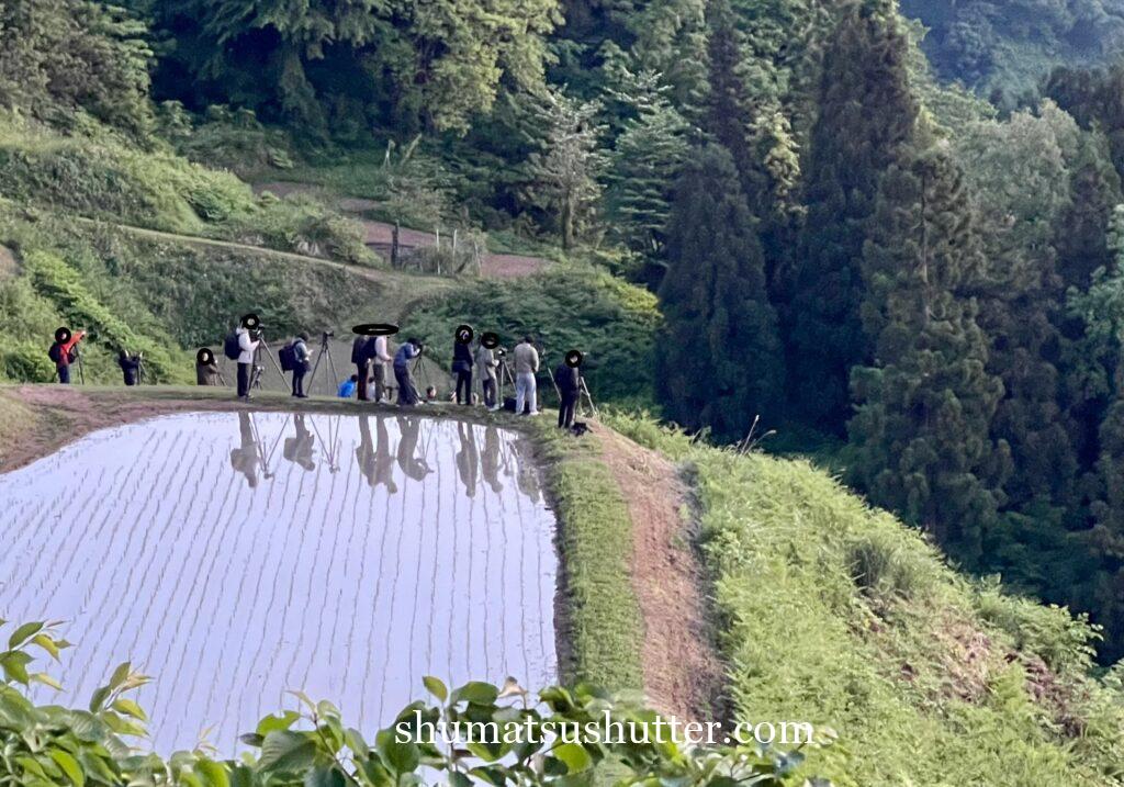 撮影環境:現地に到着して車を止めることができれば、棚田自体は広いので三脚を据えてしっかりと撮影はできます。ただ、いいポジションは早めにお確保が必須。棚田の畦道での撮影はあまりよろしくないかと思います。