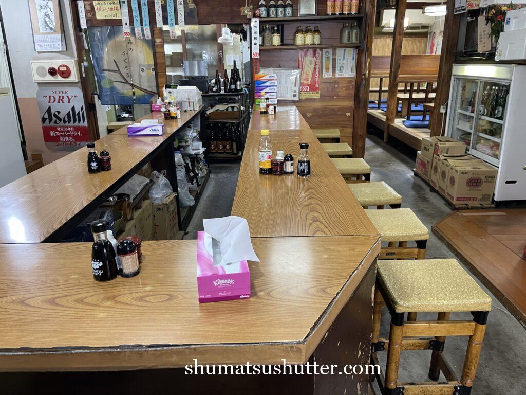 これがななかなか雰囲気のある居酒屋で、入るといきなりコの字のカウンターが・・・。