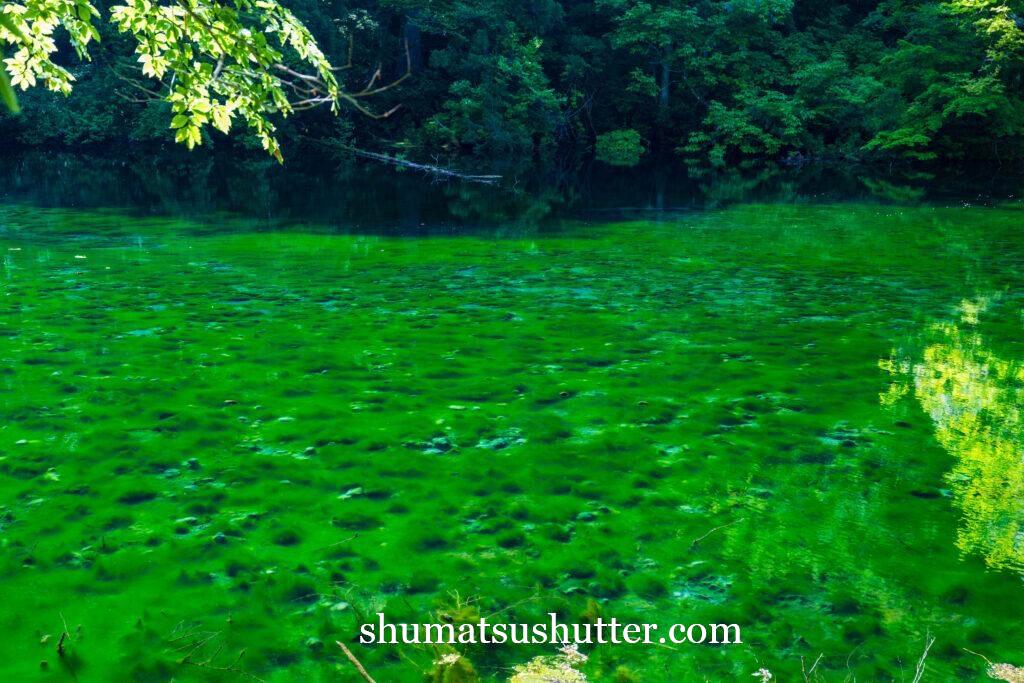 説明文では「1日約43000tの水が湧き出ており、1日1回池全体の水が入れ替わる」そうですす。